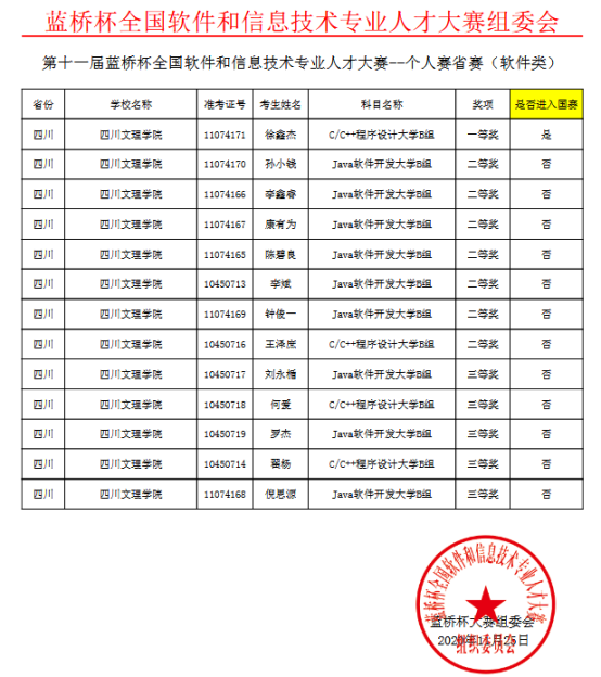 受疫情影响,第十一届蓝桥杯全国软件和信息技术专业人才大赛省赛分两场举行,分别于2020年7月5日、2020年10月17日在伟德国际victor1946举行并落下落幕。此次大赛,公司软件类和电子类共有26名同学参加,共获得四川省一等奖6项,二等奖7项,四川省三等奖6项。其中一等奖获得者徐鑫杰、向盛祖、宋旭峰、林黎明、方海兵、税少秋同学进入决赛参加全国总决赛,获得全国二等奖2项,三等奖1项,优秀奖3项。