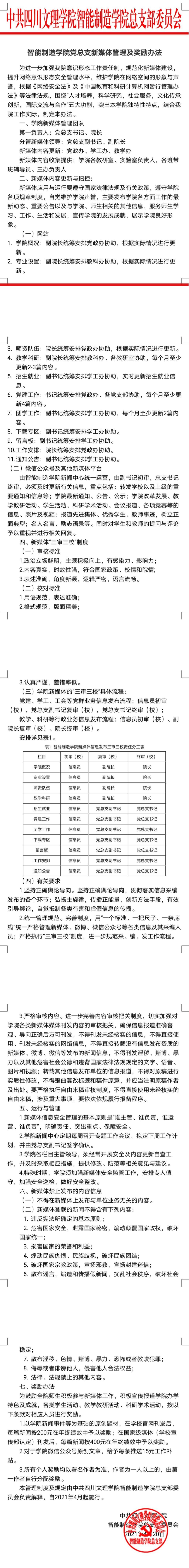 为进一步加强公司意识形态工作责任制,规范化新媒体建设,提升网络意识形态安全管理水平,维护公司在网络空间的形象与声誉,根据《网络安全法》及《中国教育和科研计算机网暂行管理办法》等法律法规,围绕“人才培养,科学研究,社会服务,文化传承创新,国际交流与合作”五大功能,突出本公司独特性特点,结合公司工作实际,制定《智能制造公司党总支新媒体管理及奖励办法》,现公告如下。