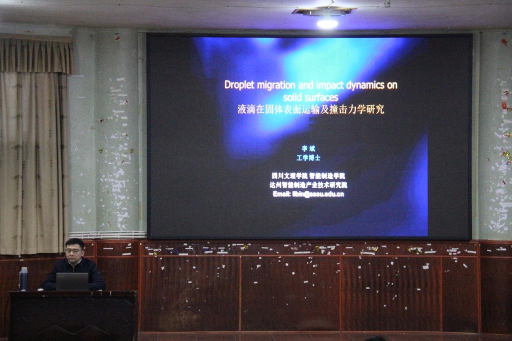 为加强员工对专业知识的深入了解,提高员工学习的积极性,智能制造产业技术研究院于2021年12月9日下午4:20在学术报告厅举行“液滴在固体表面运输及撞击力学研究”主题知识讲座,此次讲座由公司青年教师李斌博士主讲,公司2021级的部分班级同学聆听了讲座。