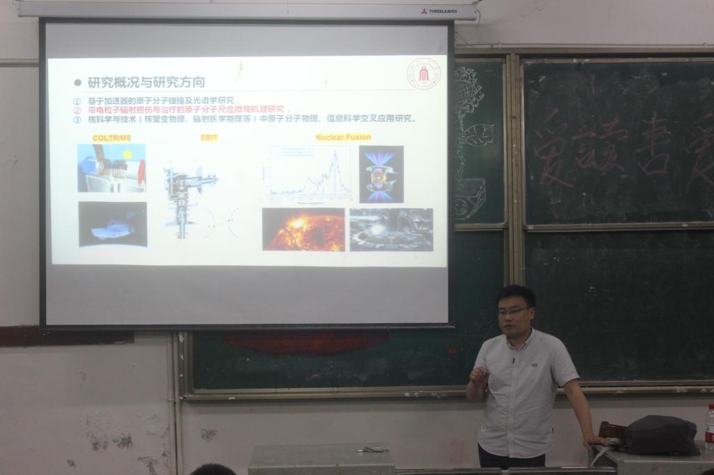 讲座开始,胡智民教授向公司同学进行了简单的自我介绍。随后,他介绍到宇宙中的太阳总是源源不断的为地球提供能量,太阳释放能量的方式是进行不断的聚变,而解决人类未来能源问题的一个重要途径就是核聚变,在很多时候也称作“人造太阳”。接下来,他向公司同学详细介绍了基于加速器的原子分子碰撞及光谱学研究、带电粒子辐射损伤与治疗的原子分子尺度微观机理研究、核科学与技术中的原子分子物理及信息科学交叉应用研究。