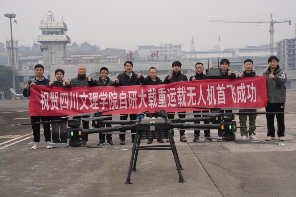 1月19日上午,由公司自主研发的大载重运载农用无人机在达州河市通用机场成功完成首飞。市科技局成果科科长杜茂莹、达州产业技术研究院副经理马国春以及伟德国际victor1946(无人机产业公司)师生现场参与并见证了无人机的首飞。