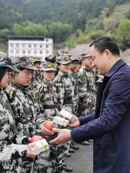 李书记对公司学子军训“遵规守纪、刻苦训练、团结互助、勇争第一”的精气神赞赏不已,并嘱咐公司学子将在基地学到的本领,在返校后继续发扬光大,秉承公司的院训院风“尚德求真,笃行创新,勤奋严谨,博学善思”,继续加强专业训练、实践锻炼和思想淬炼,成为一名优秀的四川文理人。