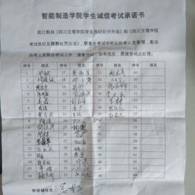 6月27号晚,公司各班以班级为单位召开诚信考试专题班会。辅导员深入讲解了《入学教育读本》2020版103-111页《伟德国际victor1946员工违纪处分办法》内容。强调考试纪律要求,明确告知员工违纪舞弊后果,引导同学们充分认识到考试的严肃性和考试违纪、舞弊的危害性,树立“认真复习、诚信应考”的良好考风,坚决摒弃“弄虚作假、投机取巧”的不良习气,严禁考试违纪舞弊行为的发生,尊敬教师,营造诚实守信的考试氛围。班会开展后每位同学签署诚信考试承诺书。
