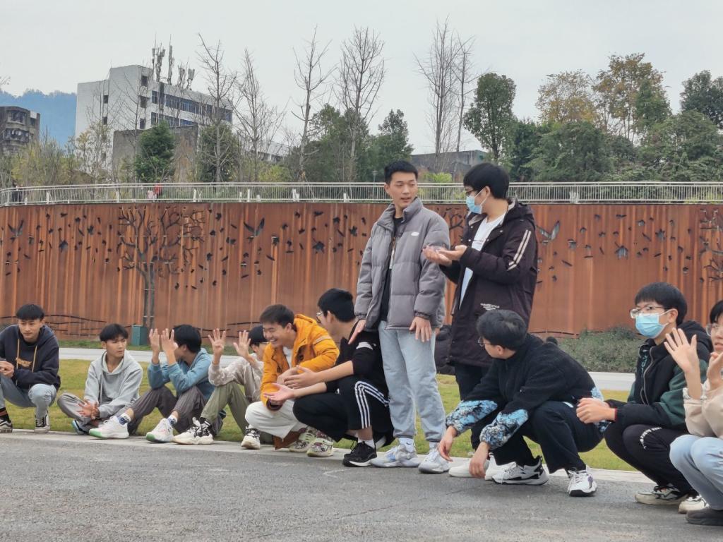 同学们一起漫步,欣赏着晴朗的天空,在阳光下进行爱的拥抱,所有队员围成一圈慢跑起来,裁判根据所有人数决定喊出数字,并开始倒数3秒,参赛队员则与邻队队员按所喊数字抱成一团。在这一过程中,同学们从学习压力中释放出来,让自己的身心得到了充分放松。