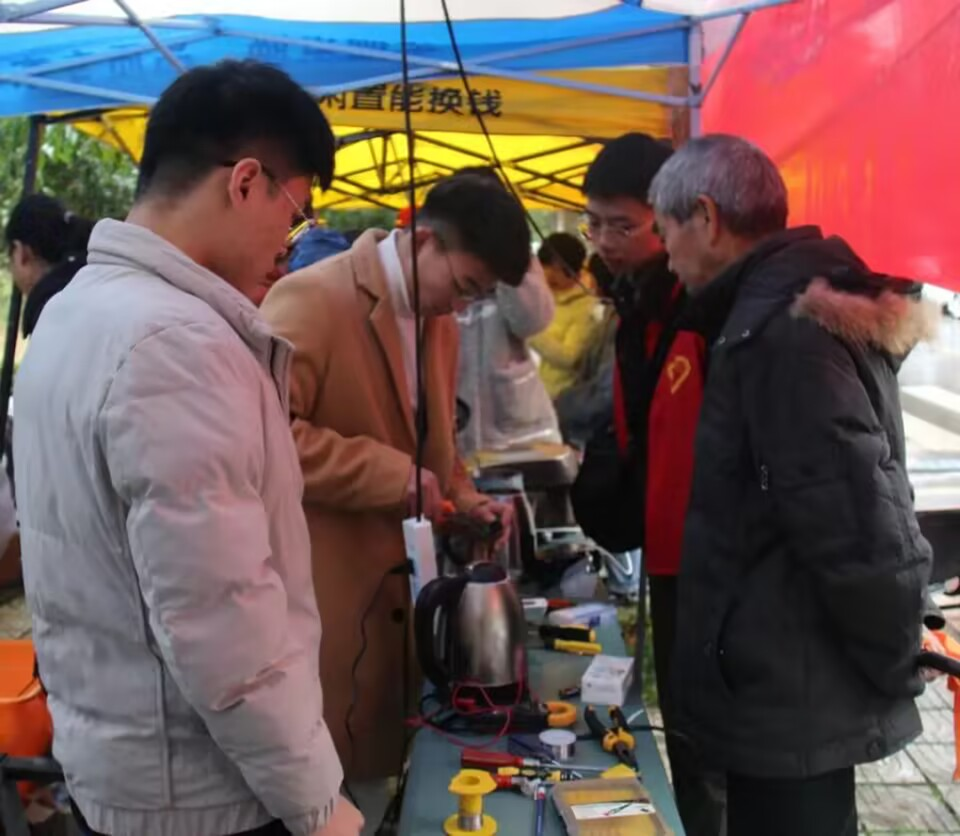 志愿者们运用在校所学知识和生活累积经验,为在校员工和社区居民提供义务维修服务,实现互帮互助,达到实践积累经验的效果。