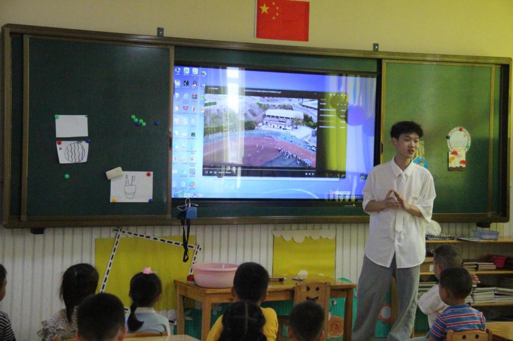 本次活动的志愿者分为三组,分别对幼儿园三个班开展科普教育讲堂和科技小制作活动。在幼儿园老师的带领下,三个班的小朋友们各自整齐的围坐在教室中央。前两个班中,杨伟润、李自强同学首先从生活中常见的交通工具讲起,再通过提问的方式进入课堂核心内容,小朋友们积极主动的举手回答问题并和小老师们进行了良好的互动,课堂氛围轻松愉快。接着他们还分别向不同的班级介绍了无人机的飞行原理和应用,并播放了由无人机拍摄的校园风景、运动会精彩瞬间等,使小朋友们对无人机产生了浓厚的兴趣。而杨依同学则给第三个班级的幼儿园小朋友们讲述了三只小猪的故事,并告诉他们做事情要团结合作、脚踏实地不可走捷径。无人机的介绍在孩子们心中种下了一颗科学的种子,三只小猪故事的讲述则给予了他们心灵上的启蒙。