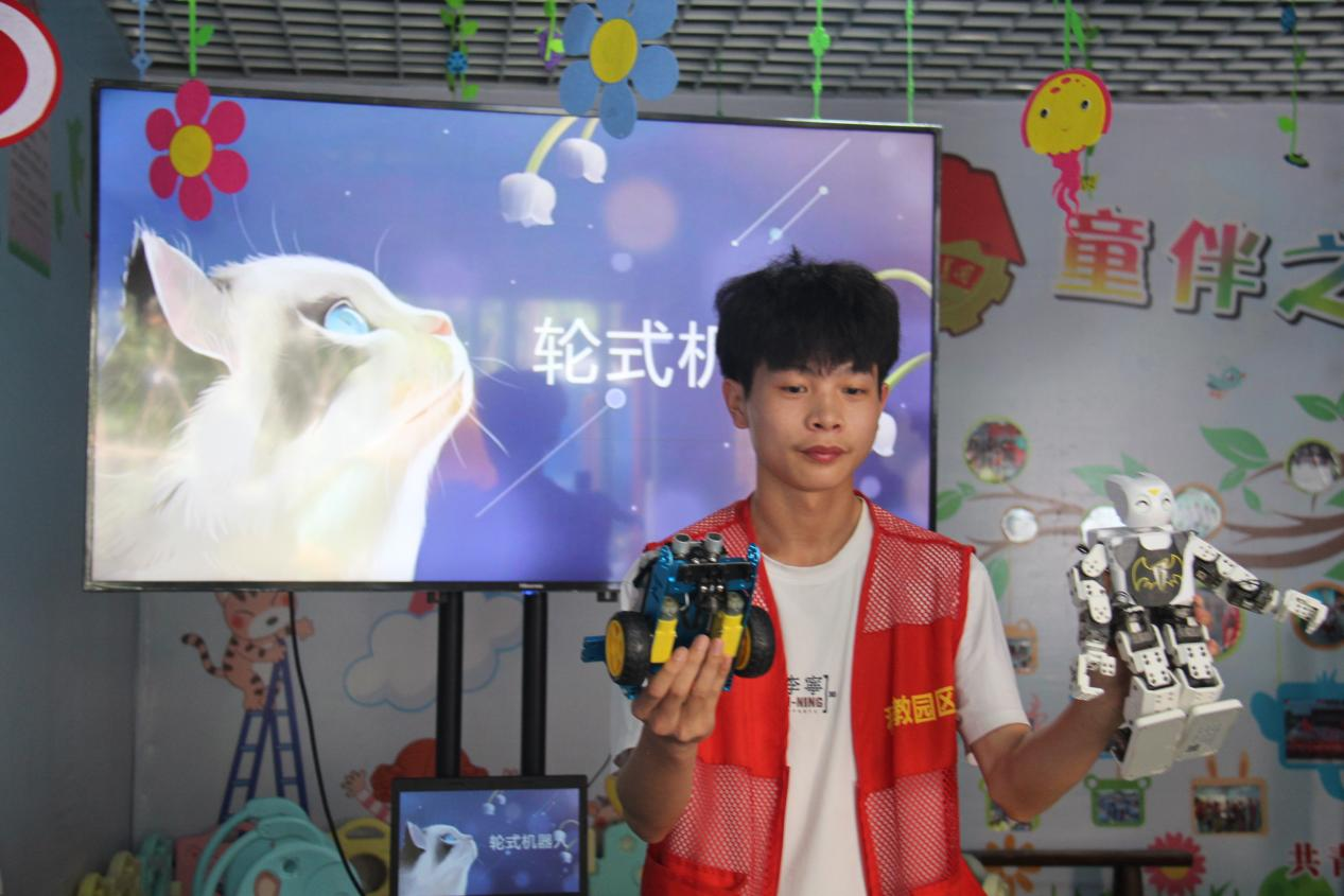 紧接着轮式机器人的教学让小朋友们更加充分感受到科技的魅力。成员讲解机器人类别、原理内容过程中穿插了许多精彩的图片和视频,把一些晦涩难懂的知识讲得轻松有趣,让小朋友们在轻松愉悦的氛围中学到了很多关于机器人的知识。演示环节中,成员为他们示范操作机器人后让其上手操作,孩子们充分体会了玩转科技的乐趣。同时进行的VR体验、激光雕刻、其他模具组装教学也引起了许多家长的关注,拉近亲子间的距离。