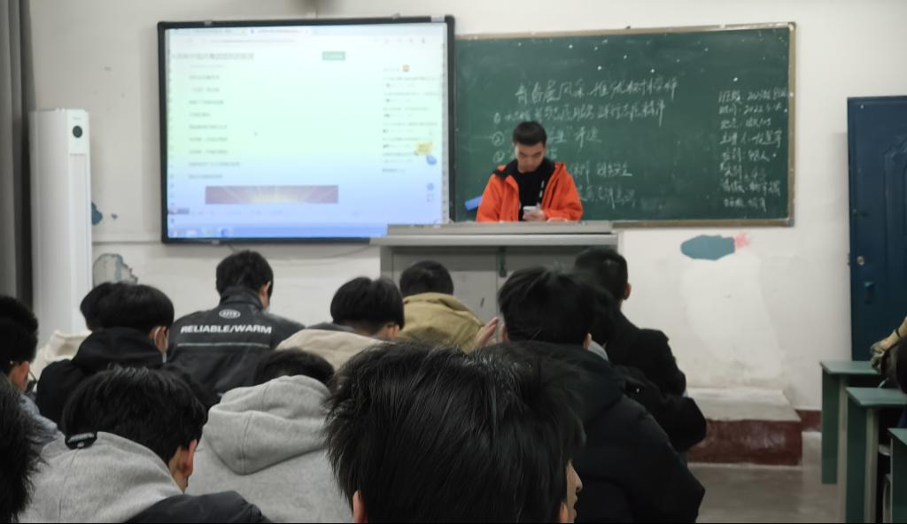 接着,各班组织进行“十佳青年员工”评选和“推优”工作。其中详细介绍了五种评选类别,分别是爱国奉献类、勤学求真类、创新创业类、社会实践类和自强自立类,使同学们更能认清自我,以便提升自己。除此之外,团支书详细讲解“推优”的有关标准,鼓励符合条件的同学积极参与,展示自我。此次环节调动了广大青年的积极性,同时为大家树立榜样,更好地设立目标,增加学习动力。