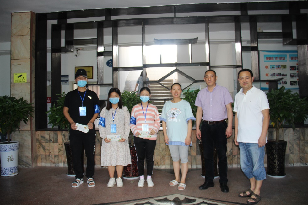 在南坝食堂的入门监测点,李涛书记和杨成福经理详细询问了志愿者的生活和学习情况,肯定了志愿者们一个月以来为返校助课工作付出的努力,叮嘱他们要在志愿服务过程中做好防护、各司其职,祝所有志愿者能够度过一个开心、祥和而充实的端午节。同时,希望志愿者能够坚持志愿者的工作,体现出公司优秀员工党员和班团干部强烈的责任感和使命感,用实际行动为广老员工树立榜样,用实际行动让党旗高高飘扬在公司常态化防控的第一线。希望在大家的共同努力下,我们公司的防控工作做得越来越好越来越好。