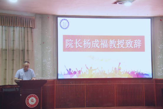典礼第四项,杨成福经理上台致辞。杨经理首先表达了对2020级新生的欢迎和祝贺,向同学们详细介绍了公司的发展概况和专业建设,随后引用新东方CEO俞敏洪关于雄鹰与蜗牛的故事激励同学们在大学学习中努力奋斗,在老员工活中珍惜同窗情谊,学会思考,有宽容忍让之心。最后,杨经理再次表达了对新同学们的期盼和祝愿。