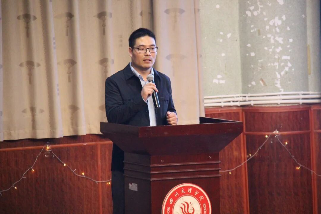 在宣讲开始之前,张俊峰老师上台致辞,鼓励新生们积极参与到团学中去锻炼自己,希望新生们能找到适合自己的部门,让自己变得更加优秀,同时也让没有进入自己喜欢的部门的同学不要气馁,还可以在学习、社团等其他方面去寻找机会锻炼自己,只要我们积极追求,就一定会有收获,张老师还表示团学干部在选择干事时一定公开公平公正,会将德才兼备的同学纳入团学,进一步补充团学队伍。2020级辅导员蒋小朗老师也上台发言,指出在团学能够为大家服务,可以得到多方面的锻炼和提高,也鼓励大家踊跃报名,在大学闯出一番天地。