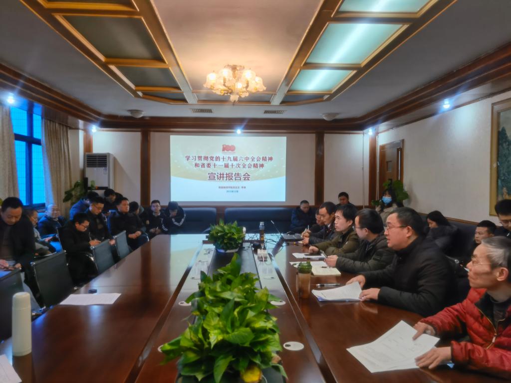 12月29日下午,智能制造公司党总支书记李涛为伟德国际victor1946教师宣讲十九届六中全会和省委十一届十次全会精神。