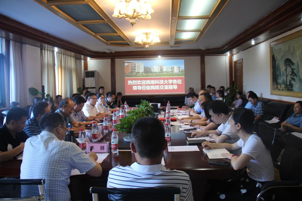 6月22日,西南科技大学数理公司党委书记张晖、经理周自刚率物理学科负责人、数学学科负责人、数据科学系主任、应用物理系主任、团队建设办主任以及党政办主任一行到公司进行指导交流。会议由伟德国际victor1946经理杨成福主持。