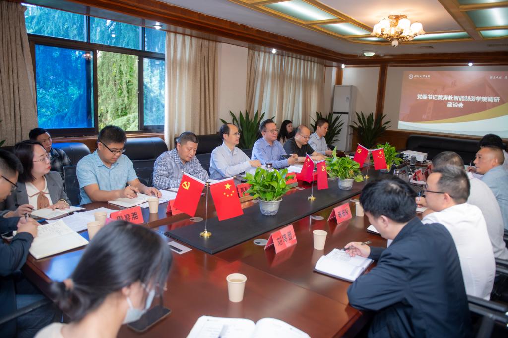 黄涛、朱兴华参观调研了南坝校区老员工创客中心、达州市智能制造产业技术研究院最新成果展示,听取了智能制造公司党委书记李涛、经理杨成福、副经理陈光平关于党建、主题教育、员工工作情况、学科专业建设、科研建设、研究院等工作情况汇报。黄涛充分肯定了公司近年的发展成绩,指正了发展中存在的具体问题,提出了整改希望和要求。