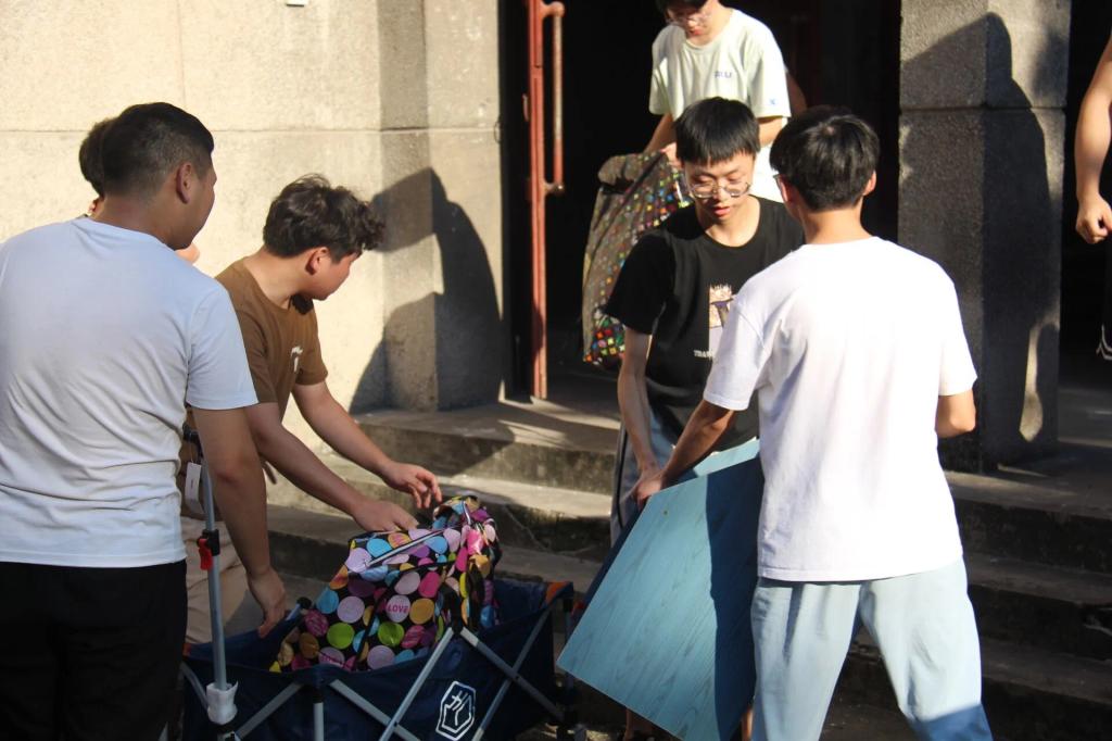 搬迁开始前一天,公司领导和各班级辅导员共同前往员工寝室,引导协助员工进行行李打包、解决困难,志愿者们与同学齐心协力将行李物品从寝室搬运至行李存放点等待搬运上车。9月1日上午,徐淋琳、蒋小朗两位老师分别在南坝与东校区开展行李清点、搬运、组织员工等工作,其余辅导员全程参与跟车与细致落实各项具体任务,为员工搬迁保驾护航;志愿者们协同配合,积极参与到搬运、装车、卸货等各项搬迁工作中,每一个环节都有志愿者们不辞辛劳的身影。采访过程中,有志愿者说:很荣幸能成为此次搬迁志愿者,搬迁过程虽然比较忙碌,但是自己乐在其中。