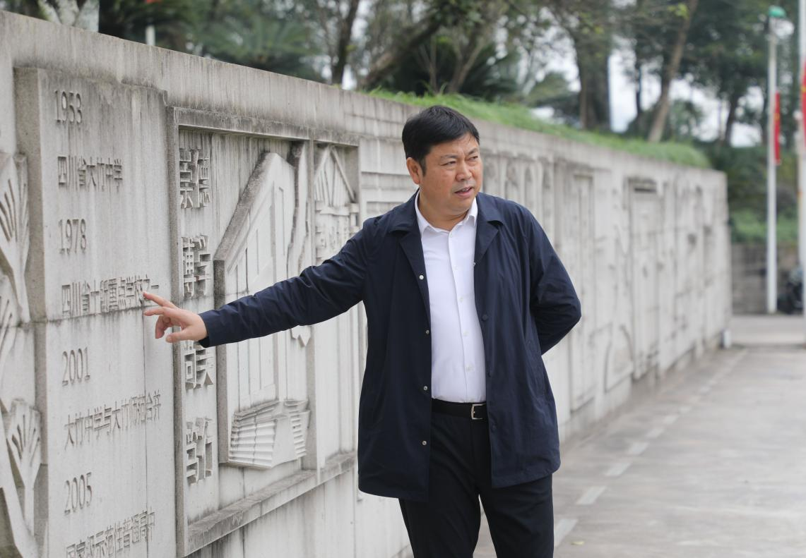 四川省大竹中学党委书记欧伦文对调研组的到来表示热烈的欢迎,并带领调研组参观了公司的校园环境,详细介绍了公司的办学历程浮雕、办学概况、教育理念、辉煌成就。