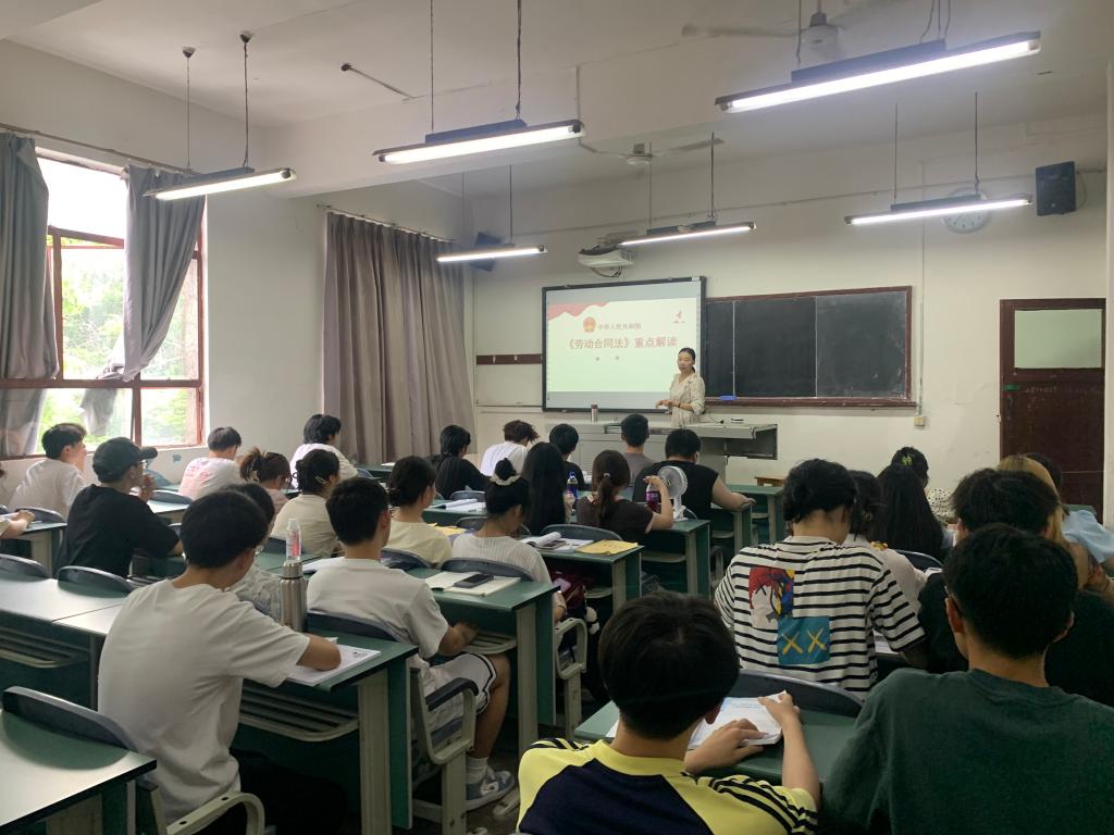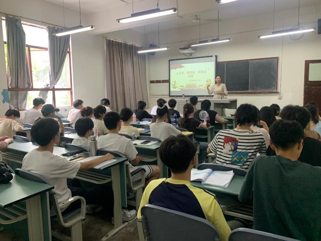 伟德国际victor1946学工办主任、分工会委员苗芳在211教室给50余名同学做了工会基础知识讲座,讲解了《工会法》、《劳动合同法》等,让同学们了解工会的性质、任务、作用及入会十大好处等知识,帮助公司同学在未来的创业、就业过程中增强维权意识,尽快地适应社会。