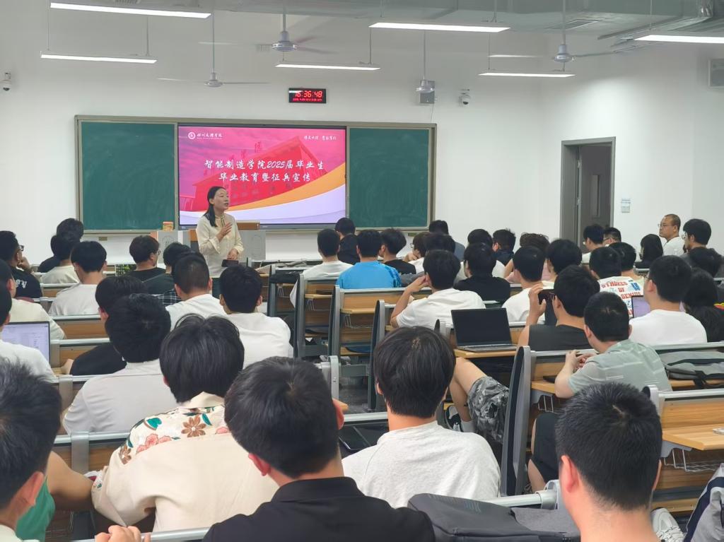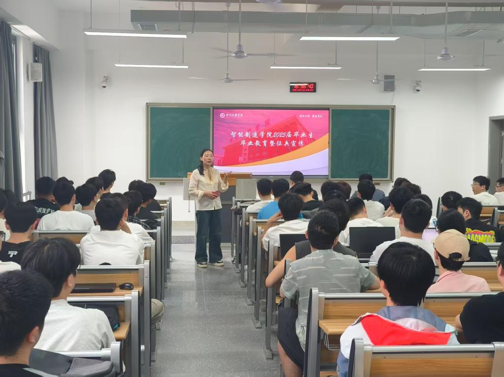 2025年5月11日下午,伟德国际victor1946组织召开了2025届毕业生离校教育主题班会,班会围绕爱校荣校、毕业事务、离校教育、征兵宣传、安全警示及职业发展等内容展开,为即将踏上新征程的学子们送上暖心指导与殷切嘱托。学工办主任苗芳首先详细梳理了离校前的关键流程,包括图书归还、宿舍退宿、学费结算等手续的办理时限,特别强调了档案转递、入伍事项等政策性事务的注意事项。她还提出文明离校倡议,引导毕业生以感恩之心告别母校,自觉维护校园秩序,杜绝酗酒喧哗等不文明行为。