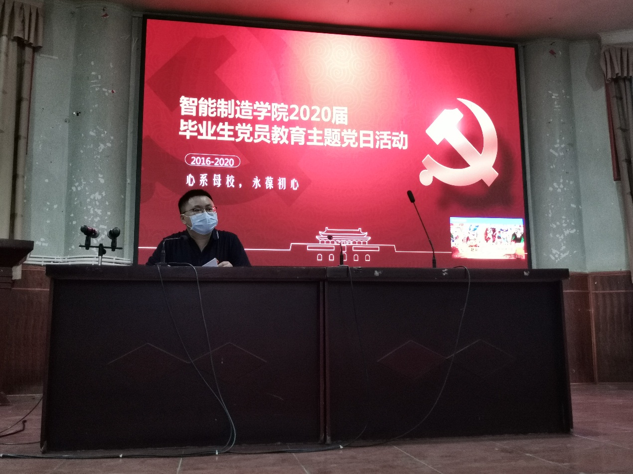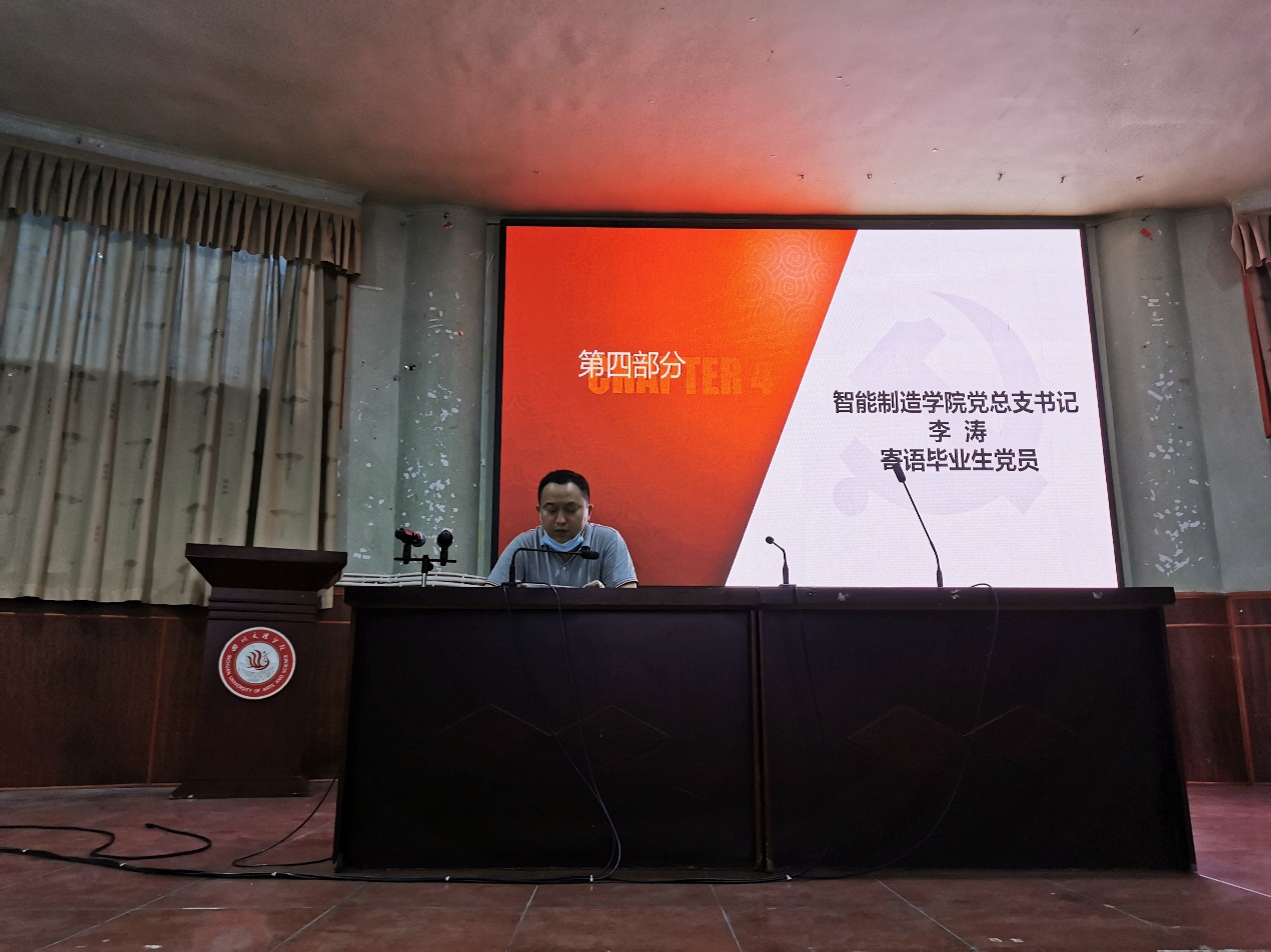 最后,党总支书记李涛为2020届毕业生党员真情寄语,面对全场的毕业生党员们,李涛书记语重心长地对大家说,习近平总书记说过“现在,青春是用来奋斗的,将来,青春是用来回忆的”,奋斗的青春最美丽,党员同志们要在思想上永远保持先进性,在行动上永远保持积极性,在品质上永远保持纯洁性,永远做一个奉献者。最后,他围绕今年的就业形势,希望同学们能够认清形势、珍惜工作岗位,先就业、再择业,同时还要带动身边更多同学主动就业。