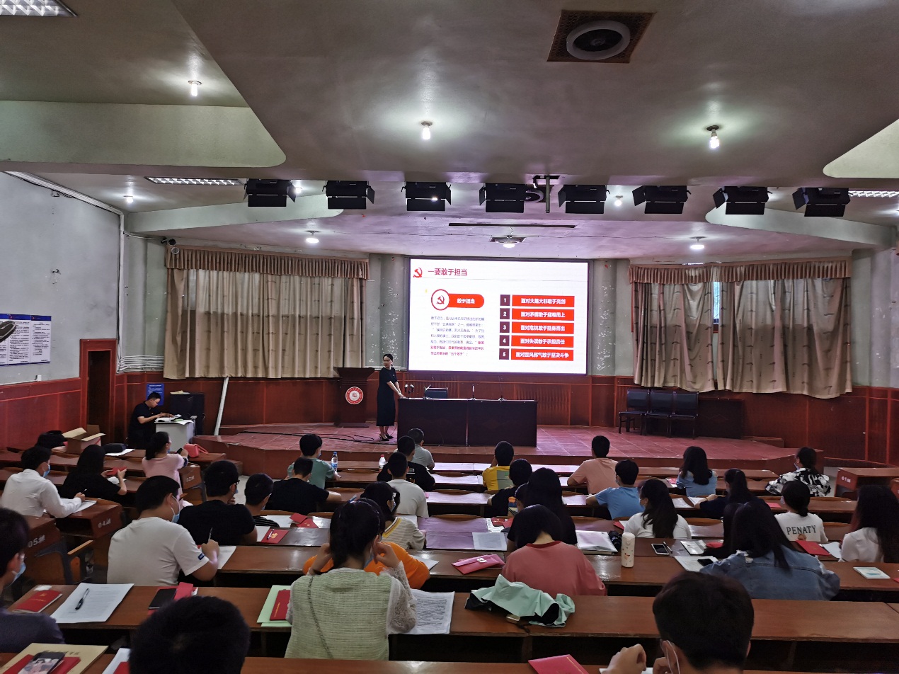 接下来,由员工第一支部宣传委员谢清爽老师为毕业生党员上了题为《不忘初心,勇于担当》的“最后一节党课”。课上,谢清爽从何为“初心”、深刻理解担当精神、党员干部如何尽责担当三个角度,引导毕业生党员们在将来的工作中,要做到敢于担当,达到习近平总书记所要求的“五个敢于”,更要善于担当,要始终坚定理想信念,要不断提高理论素养,要着力养成家国情怀。