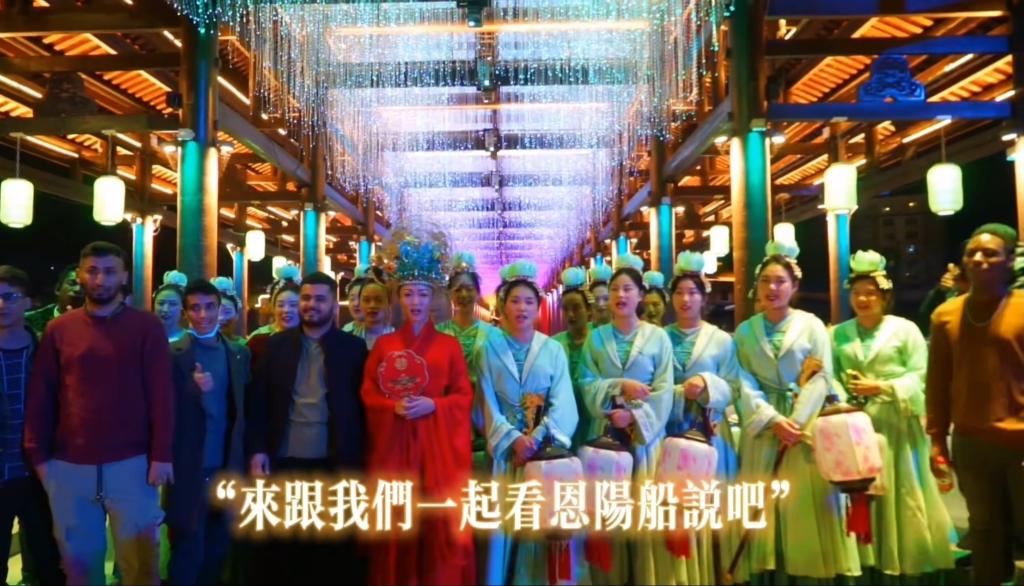 晚上7时,职工参与了中国首个以米仓古道文化为主题的川内首个大型情境夜游项目《恩阳船说》的演出,和当地的媒体一起通过抖音等方式宣传了中国传统文化,再现了“千年米仓道,早晚恩阳河”的繁华盛景。