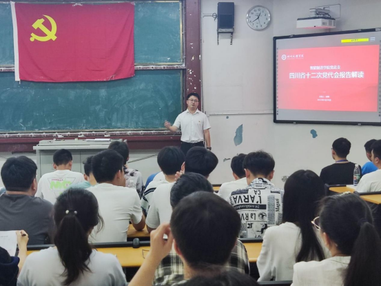 会上,首先以“四川省第十二次党代会报告解读”为主题,智能制造公司党总支副书记侯翔为2022届毕业生党员上了“最后一次党课”,详细解读了中国共产党四川省第十二次代表大会报告,指出此次党代会是在迈步全面建设社会主义现代化四川新征程、喜迎党的二十大的关键时刻召开的一次十分重要的会议。勉励毕业生党员们要在知行合一中强化使命担当,以实际行动落实省第十二次党代会的精神,以优异成绩迎接党的二十大胜利召开。