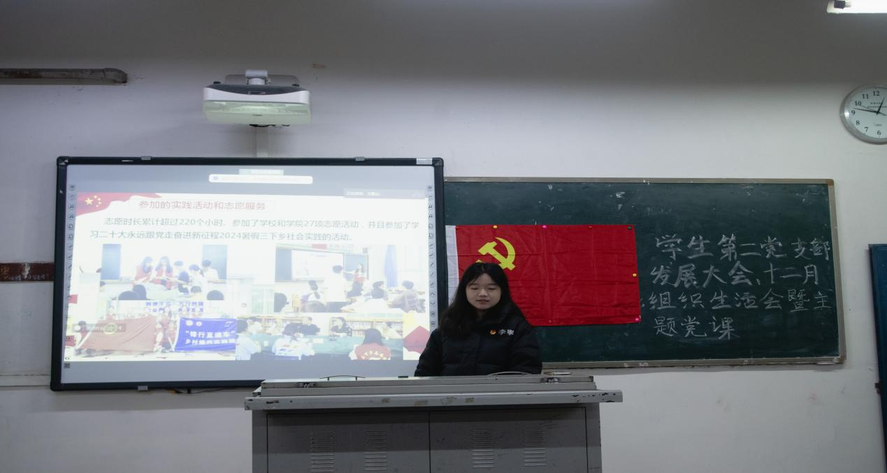 在支部书记宣布大会议程并清点到会人数之后,大会正式开始。首先,由各发展对象一一发言,说出自己对党的认识、入党的决心和动机等。发言结束后,由相关介绍人老师也对其进行评价,每位介绍人都对所介绍对象说出了优缺点,也提出了期望。接着,苗芳老师和潘阳骉老师分别对10位发展对象及在场的所有预备党员和积极分子提出了6点要求:期望大家勤学求真、修德强身、明辨是非、踏实做人、模范带头、学会感恩。之后,参会人员对本次发展对象发表意见,此环节大多数由发展对象较为熟悉的人发言,因此让大家更加深刻的了解到了每位发展对象的情况。