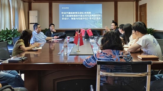 齐教授目前在陶瓷材料设计方面的研究领域为光功能材料与核用陶瓷材料,面向国家安全和重大专项中的关键材料需求,立足基础科学研究,推动产业化运用。在陶瓷材料制备方面的研究领域为陶瓷纳米微粉制备、新型陶瓷成型与新型烧结工艺及机理,开展初始原料全国产化,且从粉体合成-素坯成型﹣陶瓷烧结全链条自主可控技术。在陶瓷材料性能评估方面的研究领域为电子结构及光学性质、热力学稳定性及扩散与表面及界面性质。此外,他还介绍了实验室中的实验器材与实验室近五年来的研究成果,并与教师们进行了相关交流。